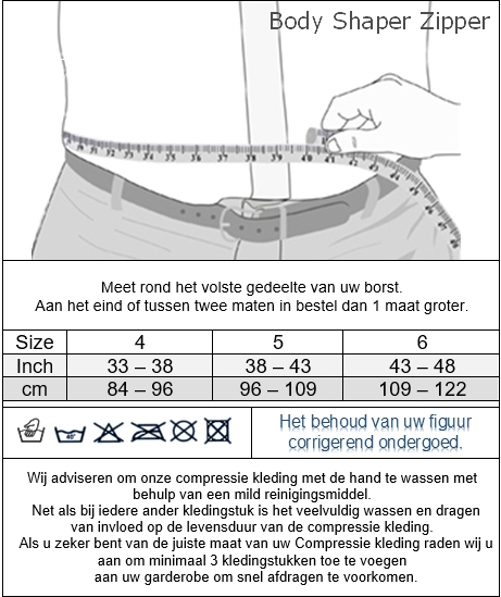 De extra geïntegreerde buikband is in drie maten verstelbaar, wordt gesloten met een sterke haak en oog sluiting en laat uw buikomvang direct afnemen. De Body Shaper Zipper heeft extra brede schouderbanden en plat gezoomde naden die zorgen voor een aangenaam draagcomfort. De rugzijde is verstevigd met sterke elastische banden die de rug ondersteunen en uw houding verbeterd. De banden verdelen de krachten gelijkmatig over het gehele bovenlichaam en zorgen voor een strakker uiterlijk en een rechtere houding.