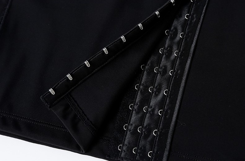 De Chest binder is eenvoudig aan en uit te trekken doormiddel van de haak en oog voorsluiting.